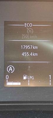 Od ostatniego tankowania na LPG poziom baku spadł o mniej niż połowę "kwadracika" (bak 62/49L), przejechałem łącznie od tankowania 170km, komputer pokazuje pozostały zasięg 660km i średnie spalanie 5.8l/100km LPG