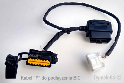 A tak bardziej szczegółowo- bezinwazyjny montaż modułu BIC zrealizowaliśmy wykonując przejściówkę "typu Y" w formie przedłużacza wiązki OBD, z dodatkowym odgałęzieniem dla BIC. Fabryczne gniazdo OBD można wypiąć z otworu w schowku i pozostaje ono za schowkiem. Do niego podłączamy wtyk przejściówki a nowe gniazdo OBD przejściówki (identyczne z fabrycznym) wpinamy w otwór schowka. Pozostaje tylko dopięcie BIC i ukrycie wszystkiego za schowkiem. Fabryczny wygląd i funkcjonalność gniazda OBD, możliwość demontażu wszystkiego w każdej chwili. ;-)