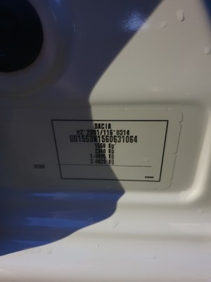Chciałbym zakupić zaprawkę lakieru do białego Sandero. Pamiętam, że w Dusterze miałem na naklejce kod lakieru tutaj za bardzo tego nie widzę. Przesyłam zdjęcie naklejki na słupku.