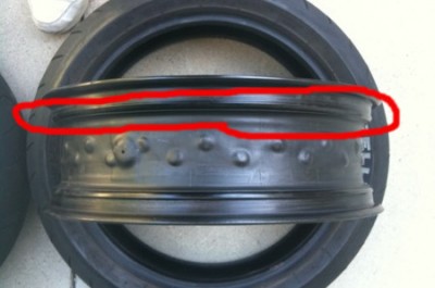 Felga bezdętkowa ma taki rant na feldze, aby opona nie spadła, Na zdjęciu zaznaczyłem.